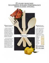 Custom Packaging began serving the foodservice industry in 1984 with our own branded "Custom Cutlery". We offer a superior product at a competitive price. We currently manufacture cutlery in Black, White and Beige. Our CP cutlery is sold in bulk cases of 1000 pieces and well as wrapped items in cases of 1000 pieces. In addition, we currently produce over twenty-five meal pack configurations for various restaurant groups. A few items are listed on the brochures below, however any configuration can be obtained.